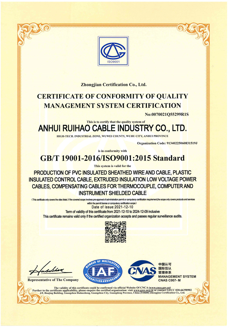 質(zhì)量管理體系認(rèn)證證書